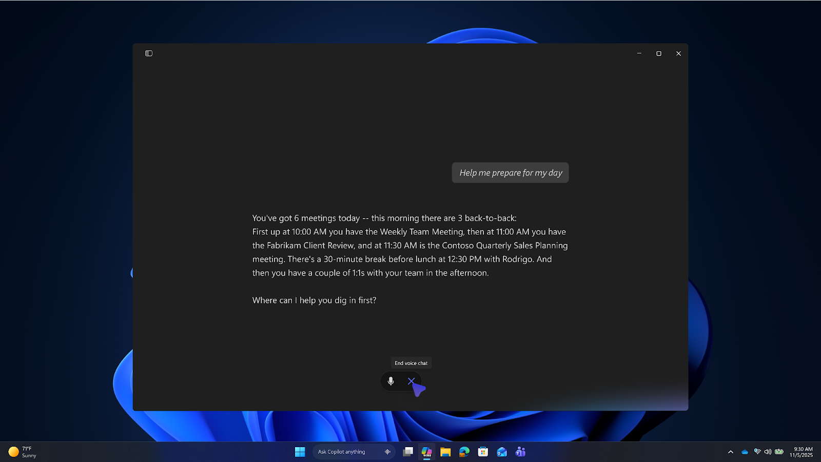 Функция Voice в Microsoft 365 Copilot обеспечивает обмен сообщениями и голосовые ответы в режиме реального времени