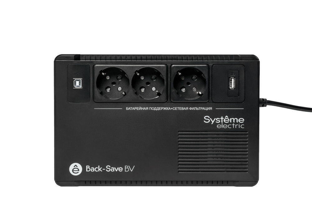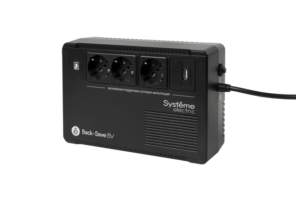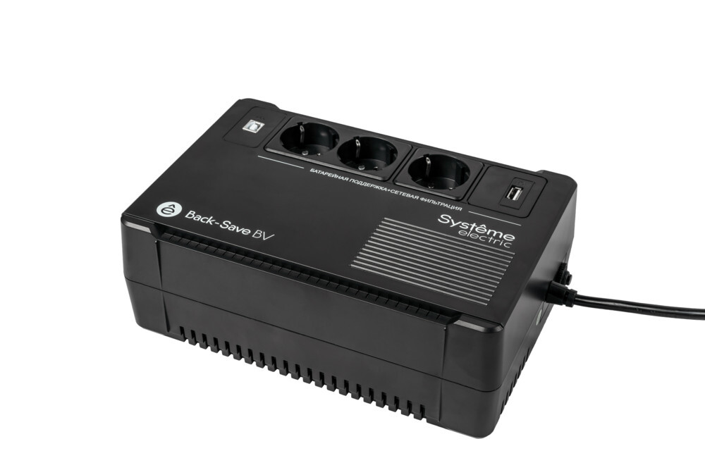 ИБП Systeme Electric серии Back-Save BV позволяют не прерывать работу в случае перебоев электропитания умеренной продолжительности, а при более длительных – гарантируют автоматическое корректное завершение работы компьютера. Кроме того, они обеспечивают защиту аппаратуры от повышенного напряжения и скачков напряжения, распространяющихся по сетям электропитания.