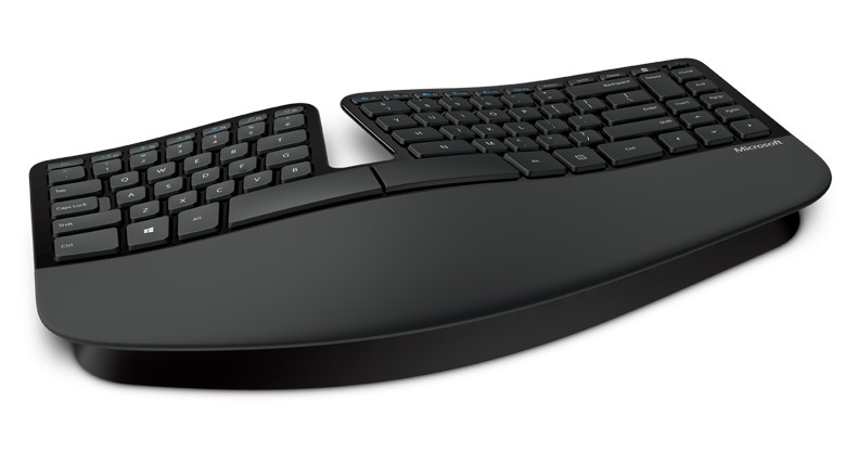 Выгнутая форма клавиатуры позволяет уменьшить угол изгиба запястий, который может приводить к болям, сокращению мобильности и продуктивности работы. Разделение клавиш помогает расположить кисти и предплечья естественным, удобным образом.