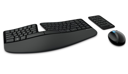 Конструкция Sculpt Ergonomic Desktop основана на современных принципах эргономики: разделенная беспроводная клавиатура позволяет держать руки в расслабленном положении, а мягкая подушкообразная опора для запястий поддерживает их.
