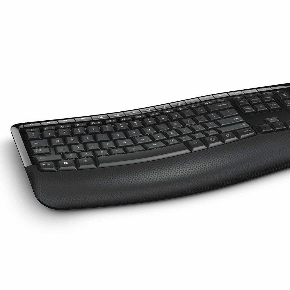 Microsoft Wireless Comfort Desktop 5050 — изогнутая клавиатура позволяет занять более удобное положение, правильно расположив руки и запястья. С надежным беспроводным подключением можно работать, находясь в любой части помещения на расстоянии до 10 метров от компьютера.