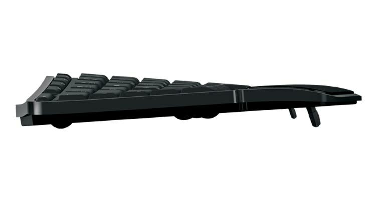 Изогнутая форма обеспечивает естественное положение кистей и быстрый доступ к клавишам.