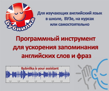 ПО «Бубнилка» является программным инструментом, который позволяет существенно сократить время, необходимое для запоминания новых слов и фраз при изучении английского языка.