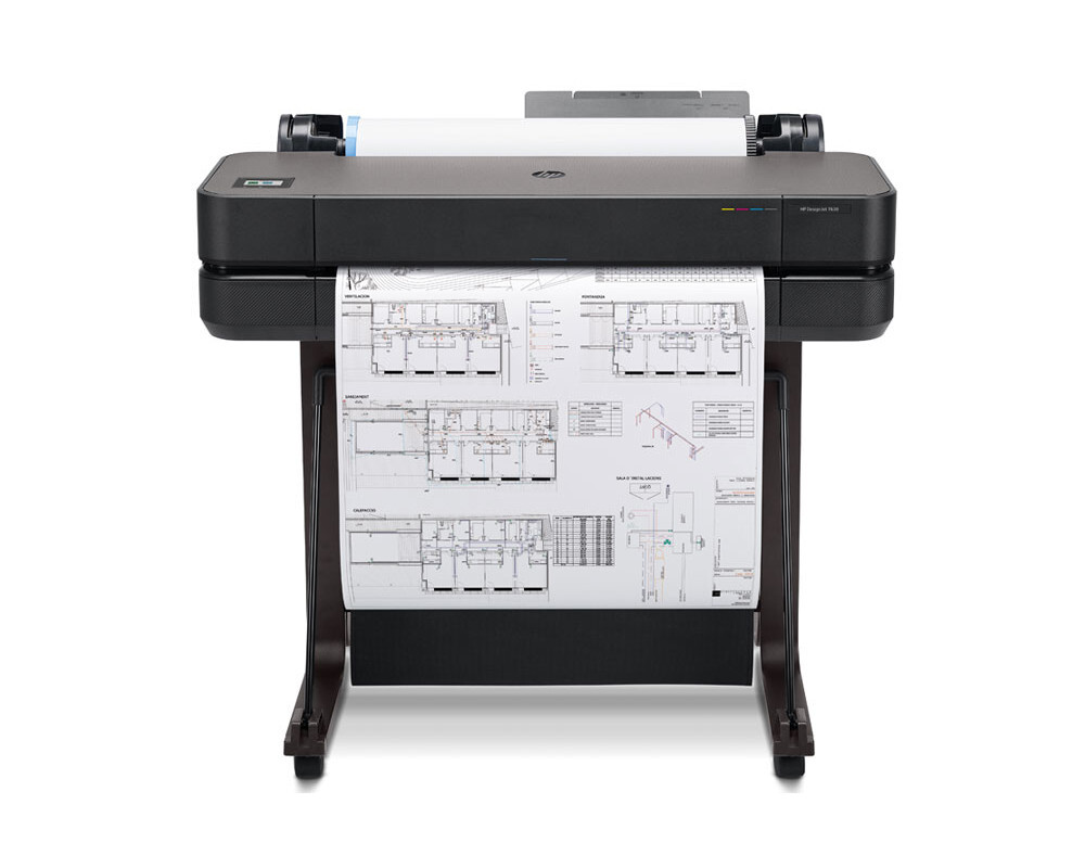 HP DesignJet T630 24" Printer — 24-дюймовый струйный широкоформатный принтер для печати чертежей, визуализаций и карт. Принтер HP DesignJet серии T600 обеспечивает возможность бесперебойной автоматической печати материалов разного размера на листах большого и малого формата.