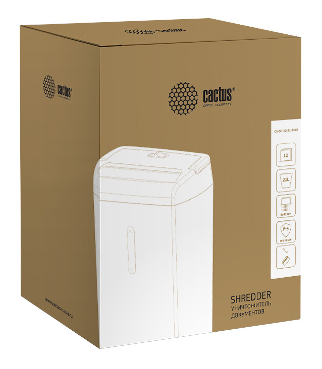 Cactus CS-SH-12-21-5X45 — высокопроизводительный шредер для уничтожения до 12 листов одновременно. Перекрестная резка, 3-й уровень секретности.