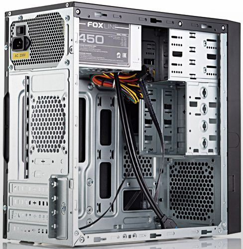Foxline FL-733R – корпус mATX с блоком питания 450 ВтПодойдет как для домашнего, так и для офисного интерьера. На фронтальной панели располагаются USB-порты, а также мультимедийные разъемы под наушники и микрофон.