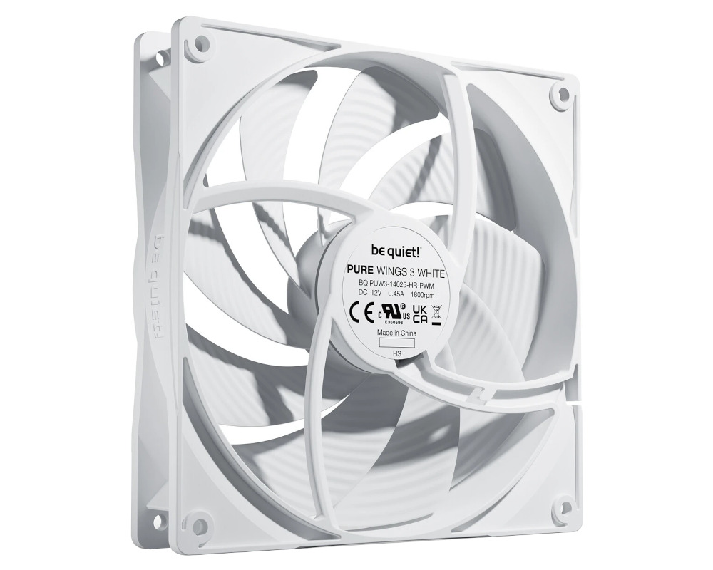 be quiet! Pure Wings 3 140mm PWM White — мощный вентилятор для требовательных систем. Его высокая производительность сочетается с современными технологиями, включая функцию обратной связи, которая стабилизирует скорость вращения вне зависимости от сопротивления воздуха.