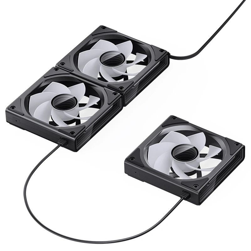 JONSBO ZK-120 Reverse оснащен 4-контактным PWM разъемом для управления скоростью и 3-контактным ARGB подключением для яркой и настраиваемой RGB подсветки. Это позволяет настроить вентилятор по вкусу и требованиям системы охлаждения и дизайна корпуса.
