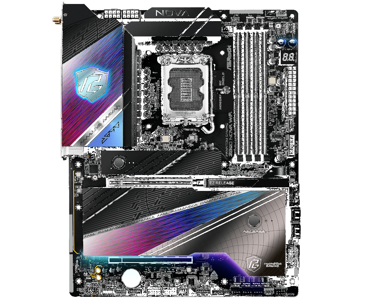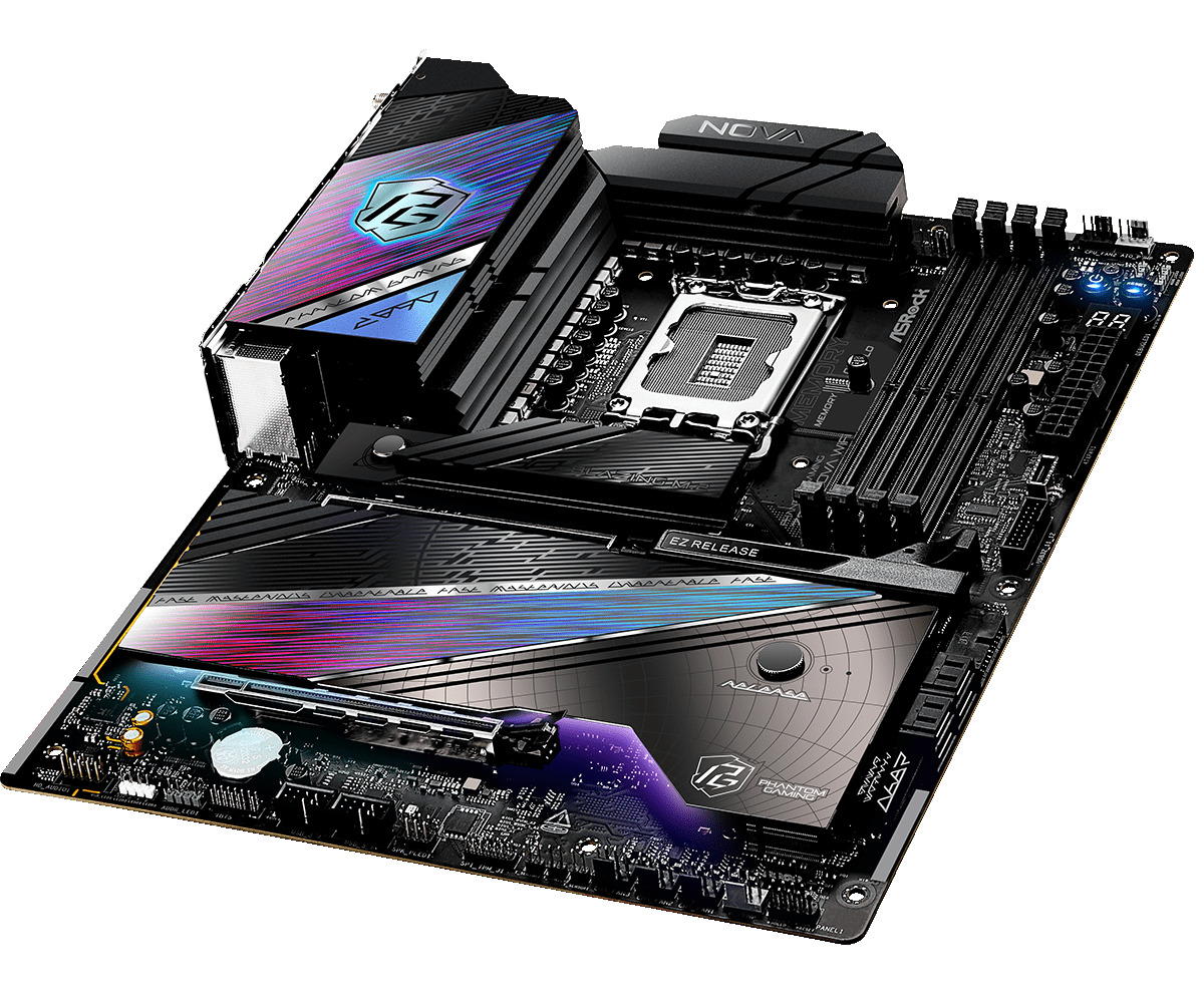 ASRock Z890 Nova предлагает шесть NVMe M.2 слотов с поддержкой новейшего стандарта PCI Express 5.0, обеспечивающего скорость передачи данных до 128 Гбит/с. Этот интерфейс удваивает пропускную способность предыдущих поколений, позволяя подключать сверхбыстрые SSD-накопители нового поколения, которые значительно ускоряют загрузку приложений и работу системы в целом.