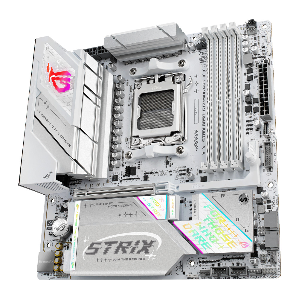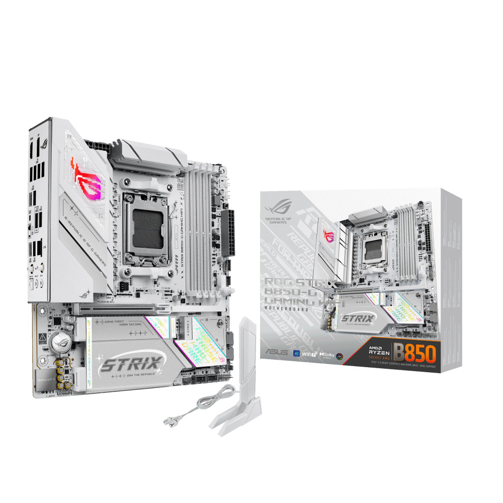 Asus ROG STRIX B850-G GAMING WIFI — это компактная и мощная материнская плата формата Micro-ATX, созданная специально для геймеров и энтузиастов производительности. Основанная на передовом наборе микросхем AMD B850, эта модель поддерживает современные процессоры серии AMD Ryzen 9000, 8000 и 7000, обеспечивая бескомпромиссную