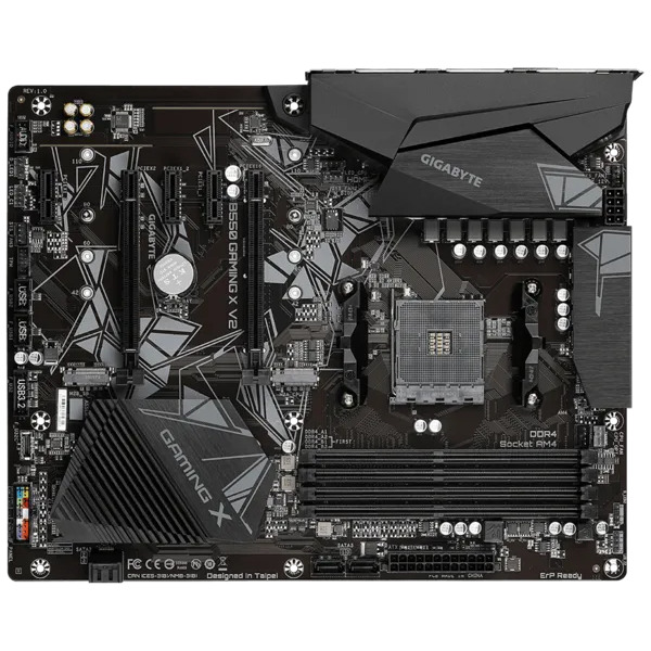GIGABYTE B550 GAMING X V2 — материнская плата форм-фактора ATX построена на базе чипсета AMD B550 с поддержкой процессоров AMD Ryzen серии 5000/ Ryzen 5000 G-серии/ Ryzen 4000 G-серии, Ryzen 3000-й серии и Ryzen 3000 G-серии на разъеме AMD Socket AM4.