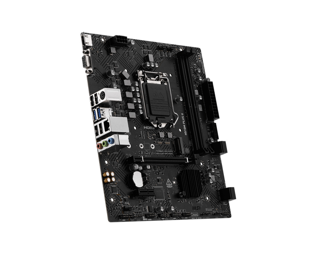 Материнская плата MSI H510M PLUS II выполнена в компактном форм-факторе Micro ATX, что позволяет легко интегрировать её даже в небольшие корпуса. Совместима с процессорами 10-го и 11-го поколений Intel Core, а также Pentium Gold и Celeron, устанавливаемыми в сокет LGA 1200.