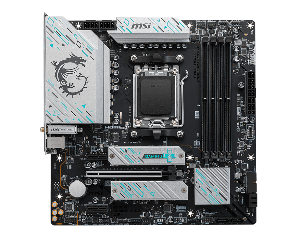 MSI B650M GAMING PLUS WIFI — игровая материнская плата форм-фактора mATX построена на базе чипсета AMD B650 с поддержкой процессоров AMD Ryzen 8000/7000-й серии на разъеме Socket AM5. Поддерживаемая память DDR5, 7200+(OC) при разгоне.