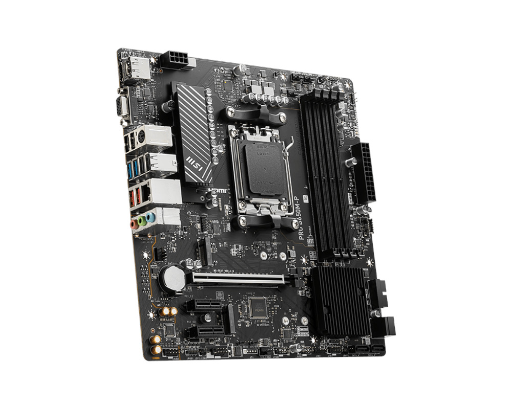 MSI PRO B650M-P — игровая материнская плата форм-фактора mATX построена на базе чипсета AMD B650 с поддержкой процессоров AMD Ryzen 7000-й серии на разъеме Socket AM5. Поддерживаемая память DDR5, 7200+(OC) при разгоне. Серия PRO предназначена для профессионалов.