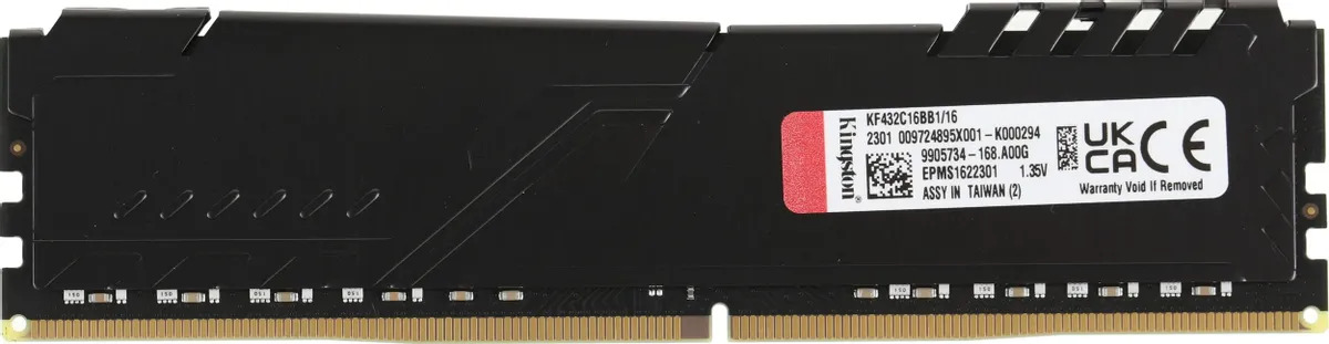 Модуль памяти Kingston FURY KF432C16BB1/16WP представляет собой 16 ГБ DDR4-3200, который построен на базе шестнадцати компонентов FBGA, что гарантирует надежность и высокую скорость работы.