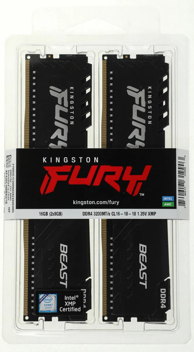 FURY Beast Black XMP KF432C16BBK2/16WP представляет собой комплект из двух модулей памяти DDR4, каждый из которых обладает емкостью 8 ГБ, что в сумме составляет 16 ГБ. Эти модули созданы на базе восьми компонентов FBGA, обеспечивая отличную производительность и надежность.