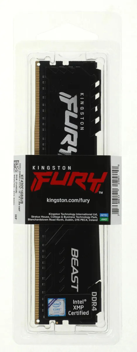 Каждый модуль основан на восьми компонентах FBGA, что гарантирует высокую надежность и стабильность. Kingston KF432C16BB/8WP поддерживает Intel® Extreme Memory Profiles (XMP) 2.0, позволяя легко разгонять память для достижения максимальной производительности.