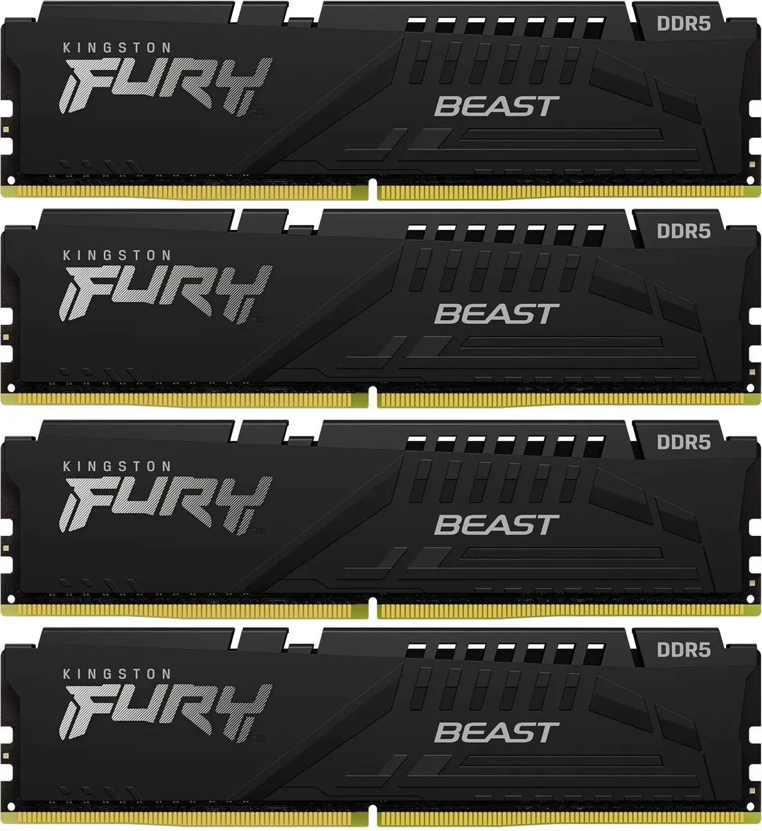 Kingston FURY KF556C40BBK4-64 — высокопроизводительный комплект памяти DDR5 RAM емкостью 64 ГБ (4x16 ГБ) обеспечивает невероятную скорость, гарантируя плавный и захватывающий игровой процесс.