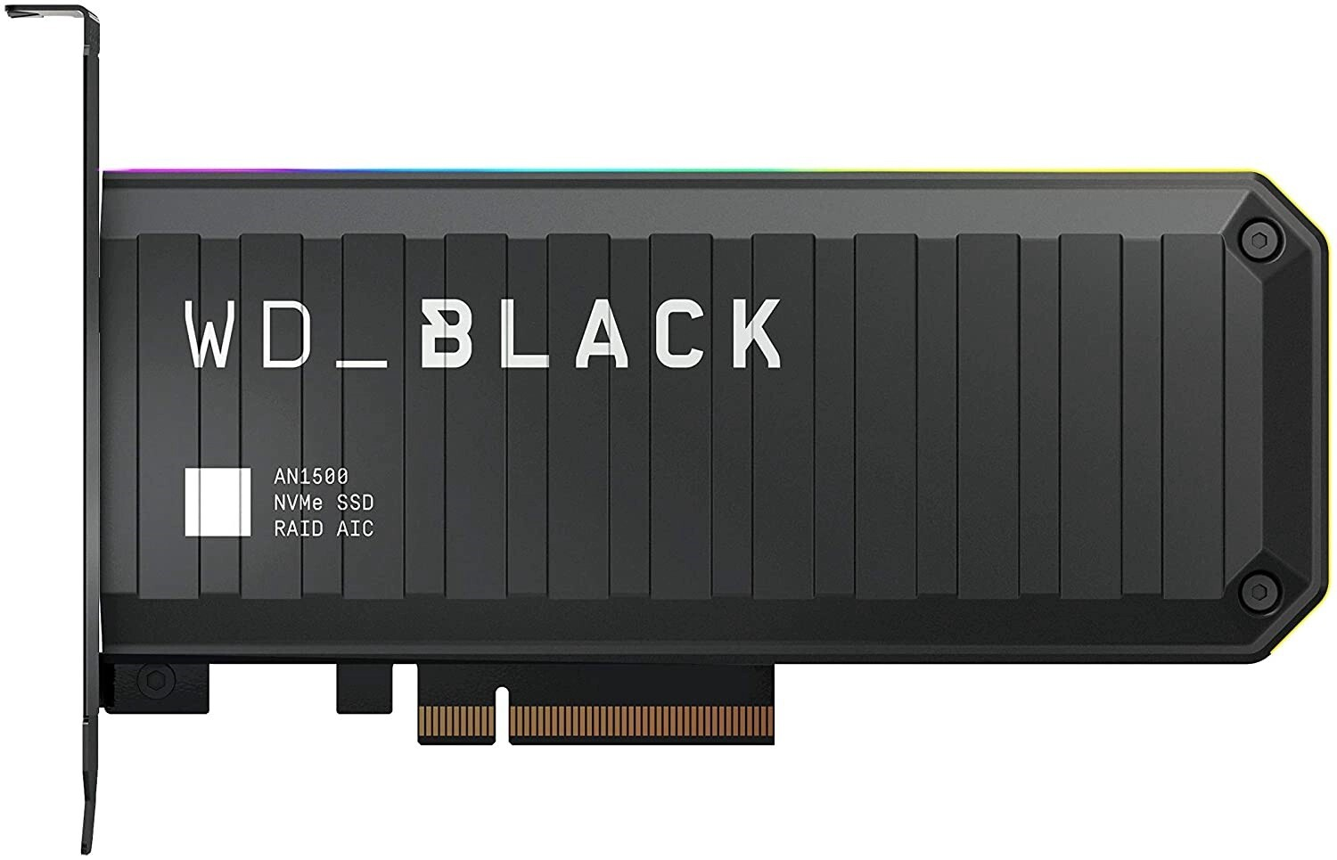 Western Digital Black AN1500 (WDS100T1X0L) представляет собой высокопроизводительный SSD емкостью 1 TB, созданный на базе передовых технологий и обеспечивающий надежное хранение данных. Диск выполнен в формате PCI-E с интерфейсом подключения PCIe Gen3 x8. Форм-фактор с разъемом PCIe делает этот SSD-диск гораздо более скоростным, чем модели с SATA-интерфейсом. Высокая надежность новых твердотельных накопителей подтверждается результатами испытаний в жестких условиях и проверками на совместимость. На верхней части радиатора запоминающего устройства реализована световая панель, создающая многоцветную подсветку RGB с широкими возможностями персонализации.