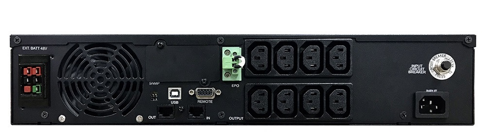 Универсальные ИБП серии SMART RT с синусоидальной формой выходного напряжения предназначены для защиты персональных компьютеров, рабочих станций, серверов и другого ответственного оборудования, критичного к форме питающего напряжения, от основных неполадок с электропитанием: высоковольтных импульсов, электромагнитных и радиочастотных помех, понижений, повышений и полного исчезновения напряжения в электросети. Благодаря синусоидальной форме выходного напряжения во всех режимах работы возможно подключение оборудования не только с импульсными, но и с трансформаторными блоками питания. Встроенный стабилизатор напряжения обеспечивает работу подключенного оборудования при колебаниях напряжения электросети без использования ресурса аккумуляторов. Для удобства «горячей» замены аккумуляторов предусмотрен отдельный батарейный отсек доступный через переднюю панель. Кроме того, возможно подключение внешних батарейных блоков для увеличения времени автономной работы и установка зарядного тока до 7 Ампер. Модели серии SMART RT отличаются большим количеством выходных розеток и широким выбором коммуникационных портов – USB, RS-232, EPO и внутренний слот для установки SNMP-карты. Коммуникационные порты, возможность использования SNMP-карты, напольная и стоечная установка и поставляемое в комплекте программное обеспечение делают ИБП SMART RT универсальным решением для защиты вычислительного и телекоммуникационного оборудования мощностью до 3000 ВА.