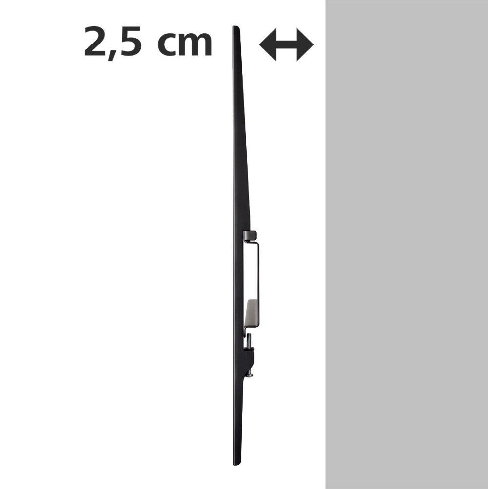 Фиксированный кронштейн Hama H-108770 предназначен для плазменных панелей и широкоформатных телевизоров с диагональю 23 – 56 дюймов и весом до 30 килограмм. Расстояние от стены не меняется и равно 25 мм. В комплект поставки входит инструкция и полный монтажный набор.