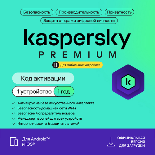 Kaspersky Premium для мобильных устройств (защита 1 устройства на 1 год) — это комплексное решение премиум-уровня для полной защиты личности, данных и мобильного устройства. Оно объединяет лучшие технологии Kaspersky для обеспечения безопасности, конфиденциальности и производительности, помогая вам сохранять контроль над личной информацией и цифровой жизнью.