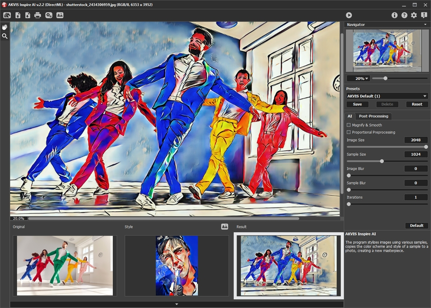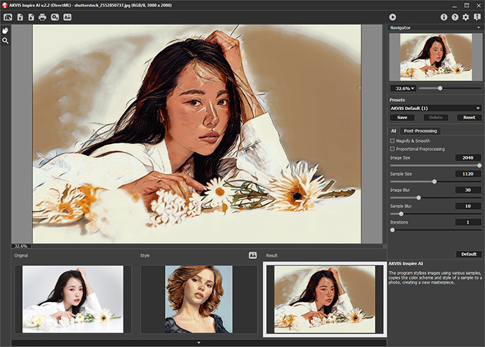 Стилизатор ИИ от АКВИС (AKVIS Inspire AI) выполняет стилизацию изображений под различные образцы живописи. Эта программа на основе искусственного интеллекта применяет на фотографию цветовую гамму и стиль выбранного произведения искусства, создавая новый шедевр. Превращайте фотографии в знаменитые картины с помощью искусственного интеллекта!