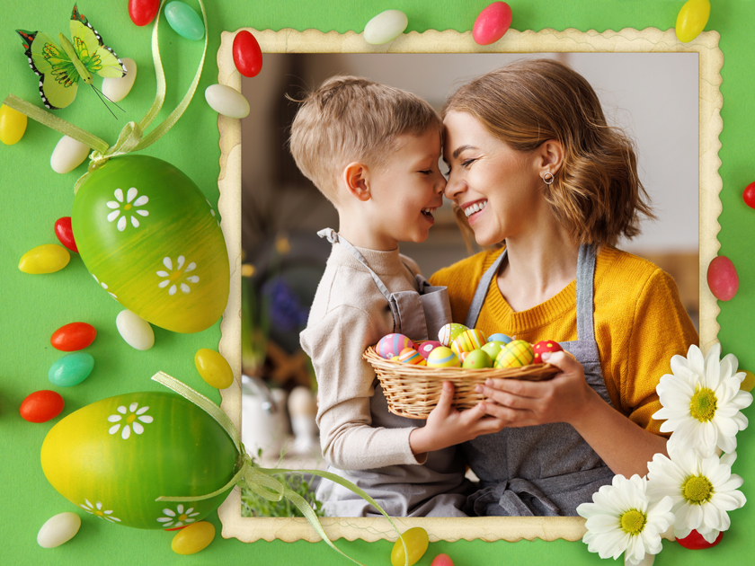 На прекрасных ярких композициях изображены красочные яйца, милые пушистые цыплята и забавные кролики, весенние цветы. Используйте эти рамки, чтобы украсить праздничные семейные фотографии и подготовить эксклюзивные открытки! Радостной и Светлой Пасхи!
