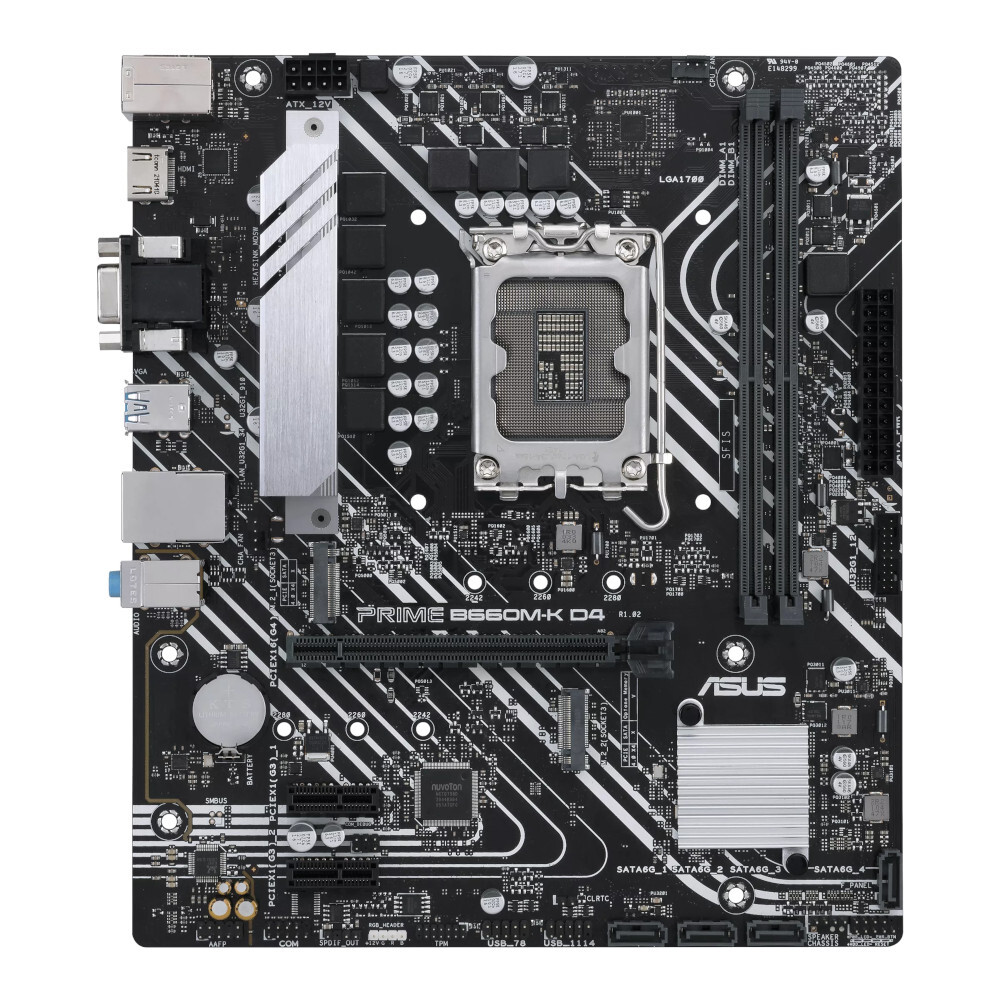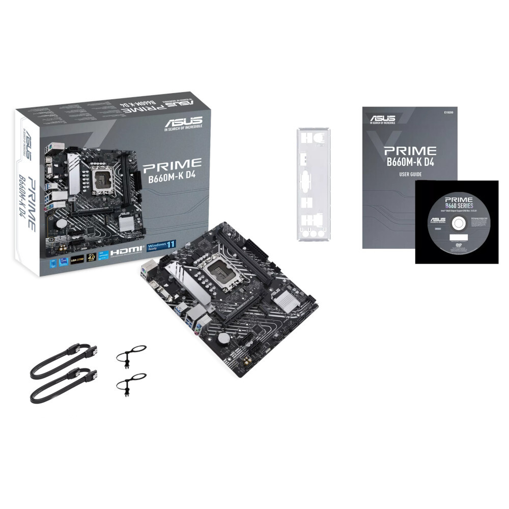 ASUS PRIME B660M-K D4 — материнская плата форм-фактора mATX построена на базе чипсета Intel B660 с поддержкой процессоров Intel Core 12-го поколения на разъёма LGA 1700. Кроме того, плата имеет 2 модуля памяти DDR4 DIMM 5333 (OC) в режиме разгона.