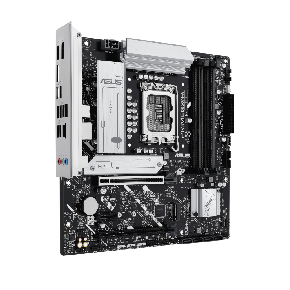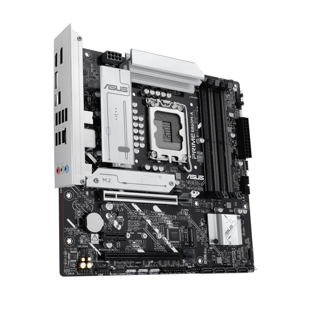 ASUS PRIME B860M-A-CSM — материнская плата формата Micro-ATX, созданная для поддержки процессоров Intel Core Ultra с разъемом LGA1851 и чипсетом Intel B860. Эта модель оснащена четырьмя слотами DIMM, поддерживающими до 256 ГБ оперативной памяти стандарта DDR5 с частотой до 8666+ МТ/с (OC) при разгоне.