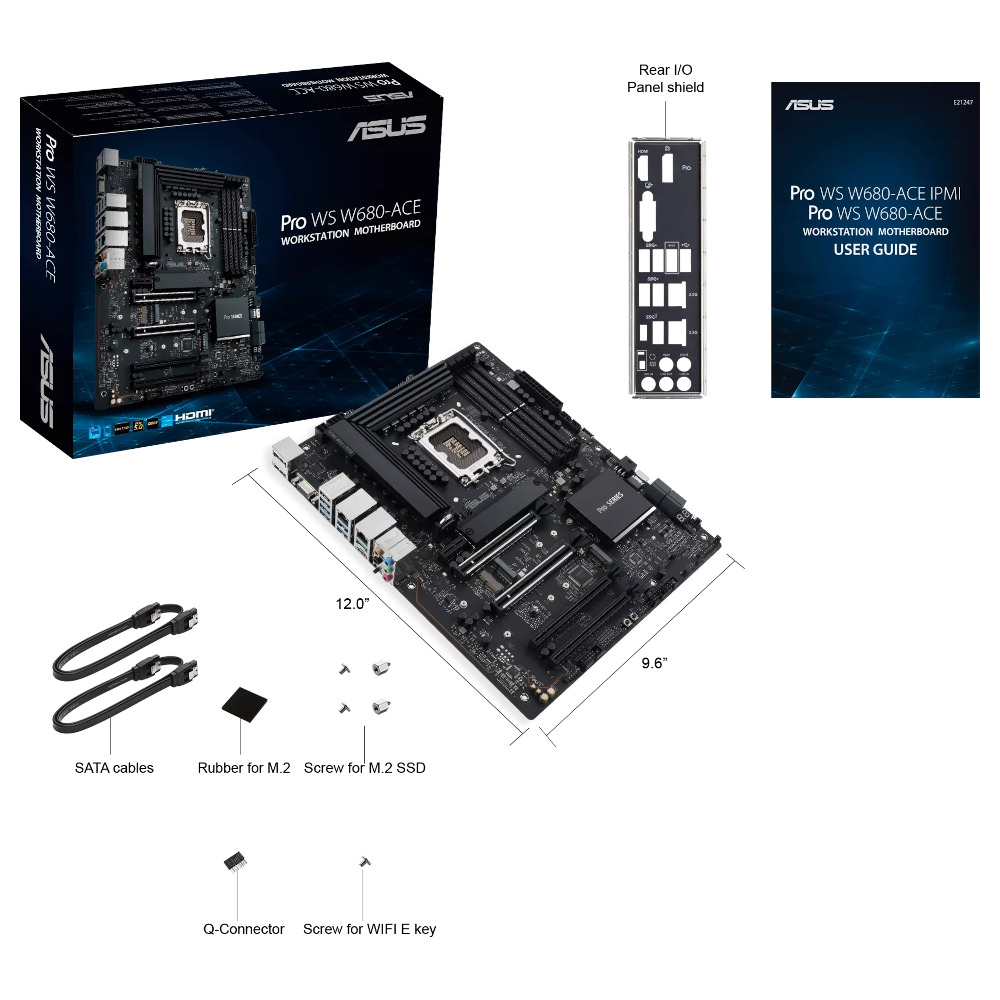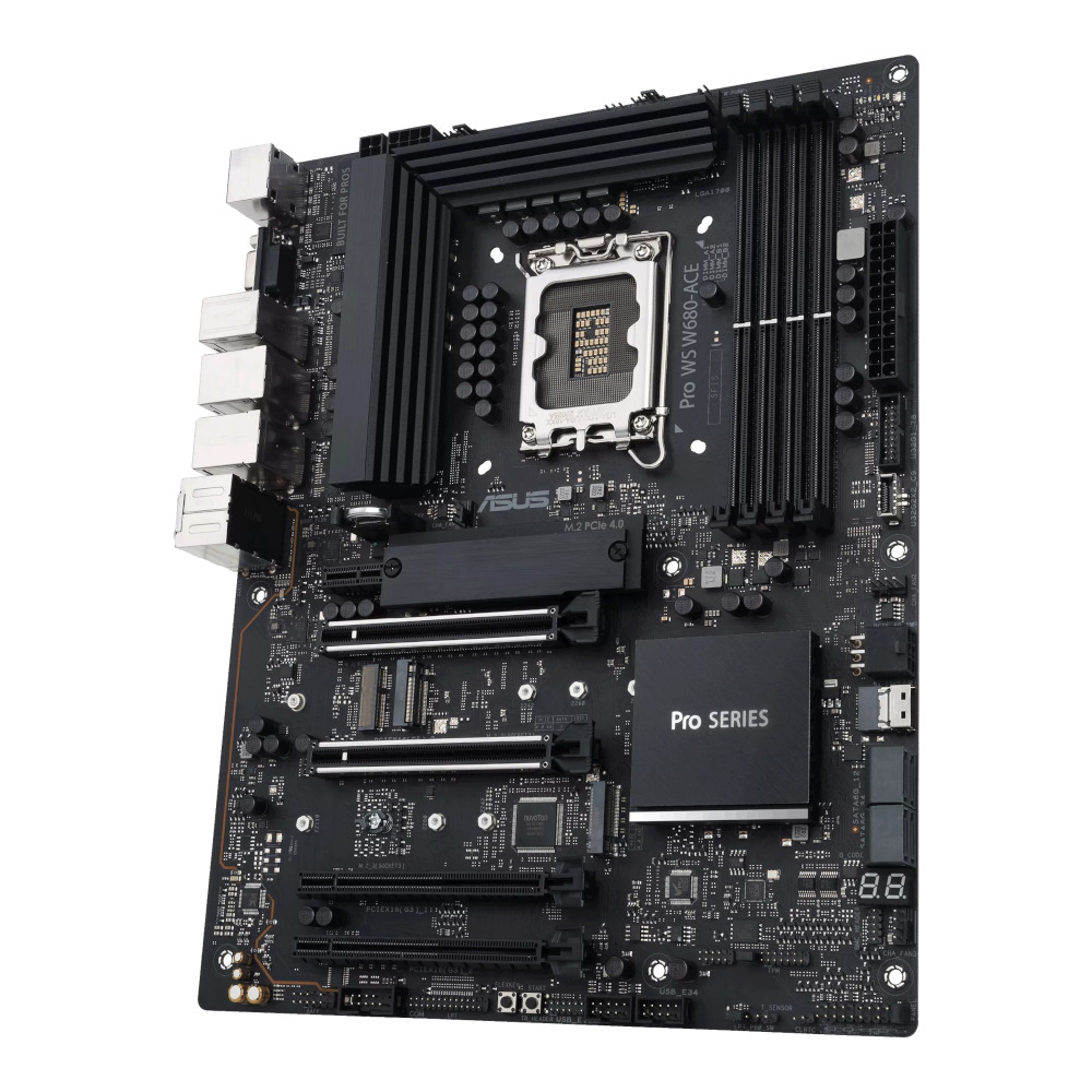 Asus Pro WS W680-ACE — материнская плата форм-фактора ATX построена на базе чипсета Intel W680 с поддержкой процессоров Intel Core 14-го и 13-го поколения, Intel Core 12-го поколения, процессоров Pentium Gold и Celeron на разъеме LGA1700.