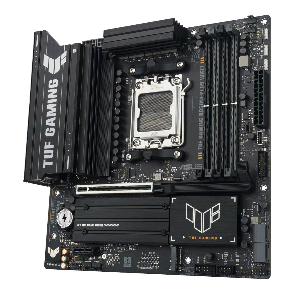 Материнская плата ASUS TUF GAMING B850M-PLUS WIFI7 сочетает в себе все преимущества современных процессоров AMD Ryzen с игровыми характеристиками и усиленной надежностью. Созданная с использованием компонентов военного класса, улучшенной системы питания и продвинутого охлаждения, она обеспечивает стабильную и выносливую работу даже в длительных игровых сессиях. Эта плата успешно проходит строгие тесты на надежность, чтобы гарантировать высокую производительность в самых требовательных условиях работы.