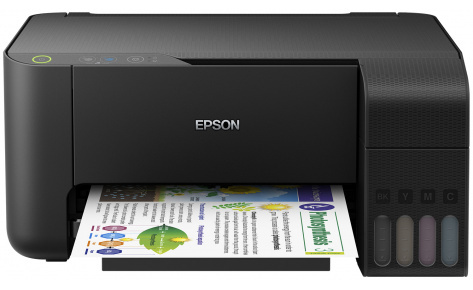 Epson L3110 C11CG87405 — высокоскоростное МФУ с фронтальными чернильными емкостями для сверхэкономичной печати цветных документов. Оборудован встроенным клапаном от случайного проливания и усовершенствованной системой заправки «Key Lock».