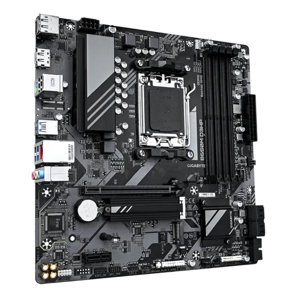 Gigabyte B650M D3HP — материнская плата форм-фактора Micro ATX построена на базе чипсета AMD B650 с поддержкой процессоров серий AMD Ryzen 7000, 8000 и 9000 на разъеме AMD AM5. Поддержка модулей памяти DDR5 до 7600(OC) при разгоне, 4 разъема SMD DIMM для модулей ОЗУ, аппаратная поддержка профилей Intel XMP и AMD EXPO.