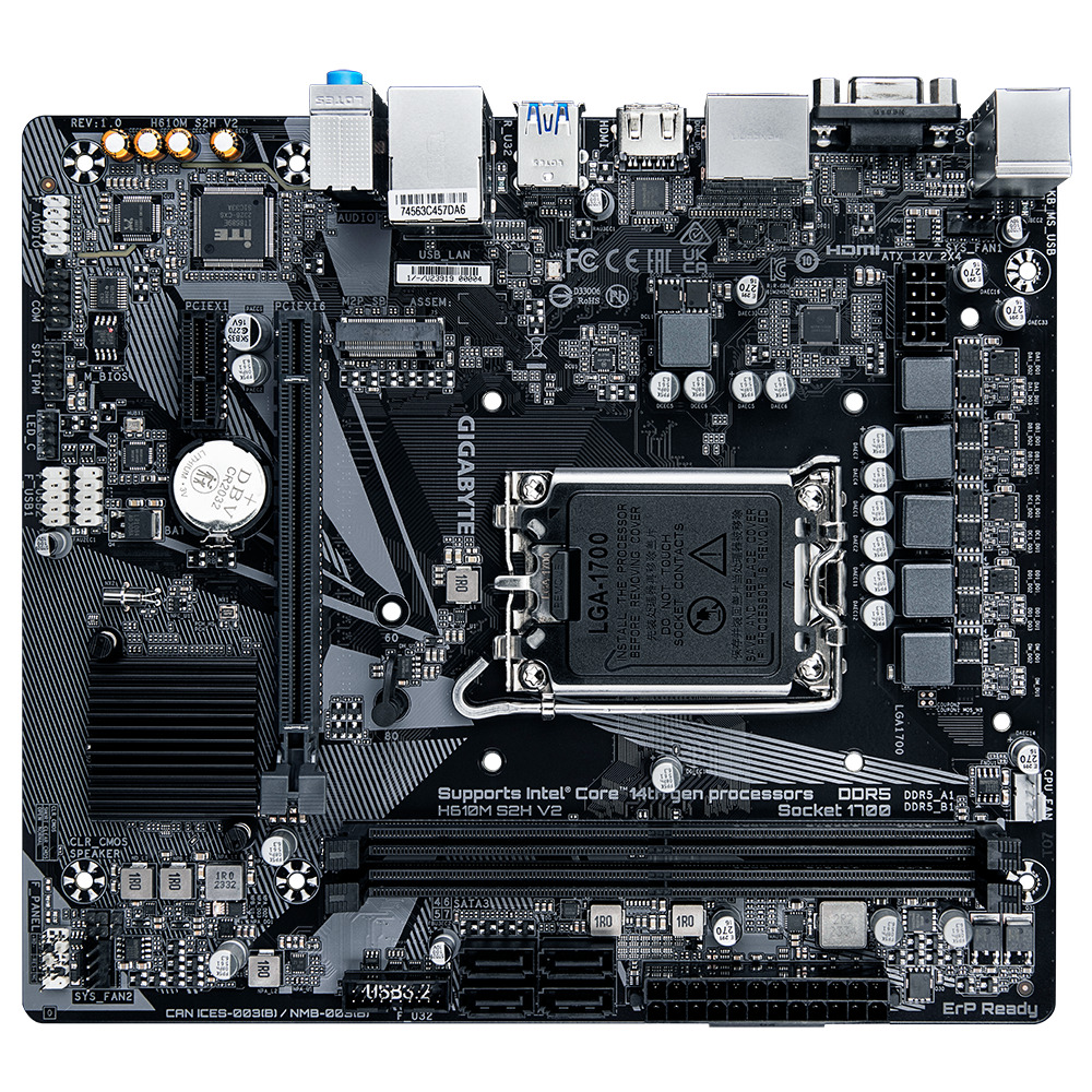 Материнская плата Gigabyte H610M S2H V2 выполнена в форм-факторе Micro ATX. Эта плата обеспечивает отличную совместимость с процессорами Intel Core 12-го, 13-го и 14-го поколения, что делает её идеальным выбором для модернизации вашего ПК.