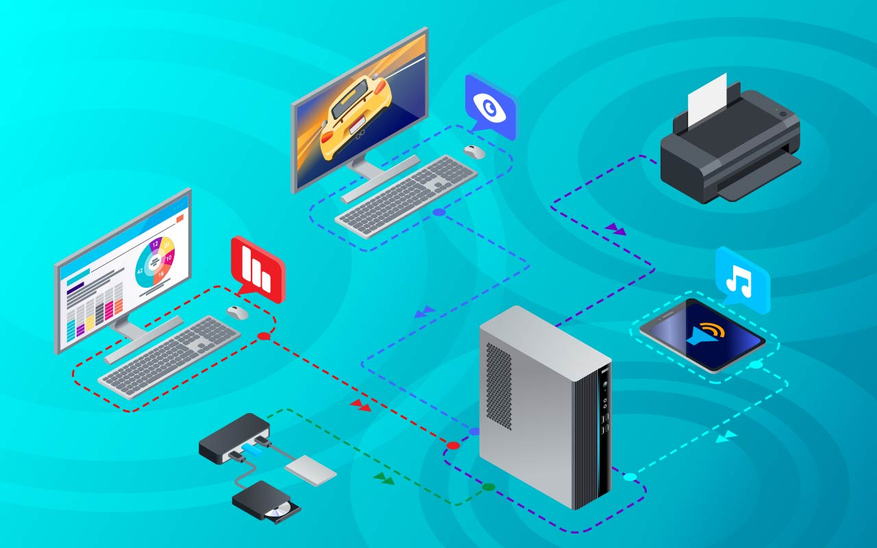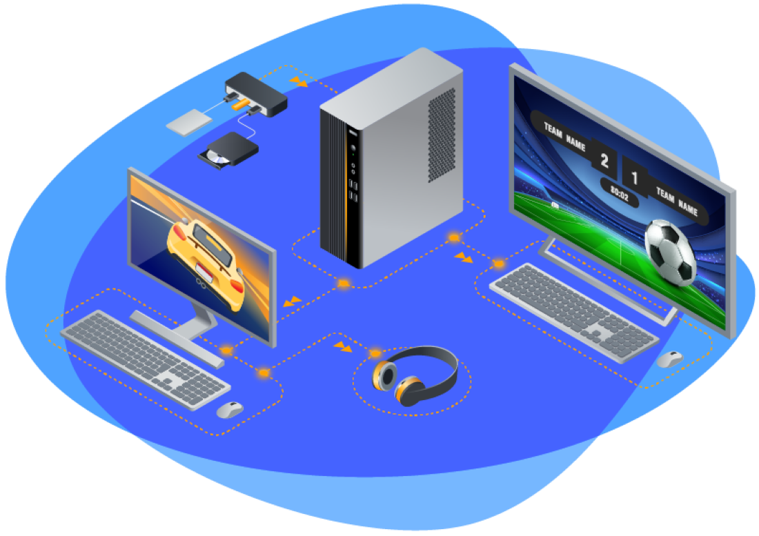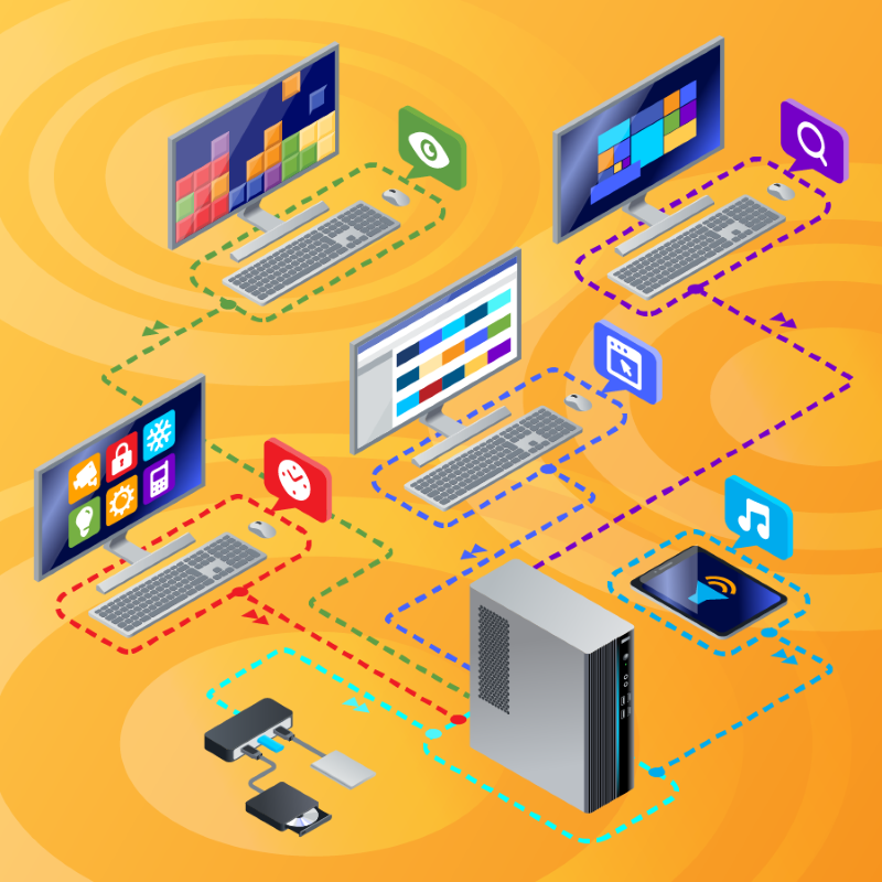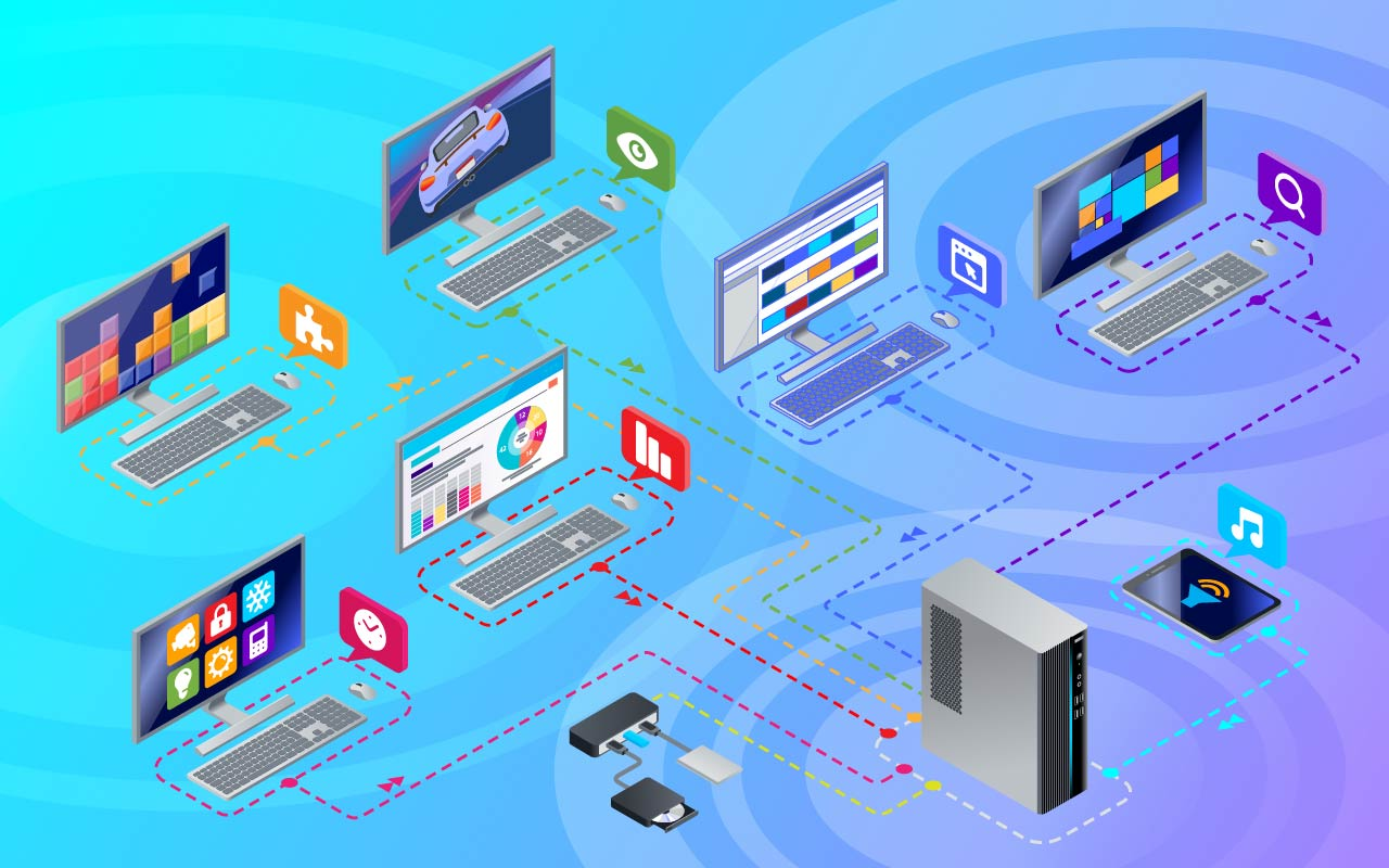 Программа разделит каждый компьютер на несколько независимых рабочих мест, что позволит увеличить количество рабочих мест на уже имеющемся оборудовании и отказаться от покупки новых системных блоков или тонких клиентов.
