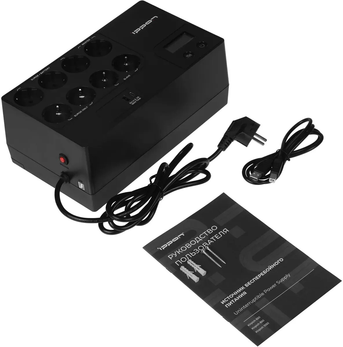 Ippon Kirpich – линейка источников бесперебойного питания, которая идеально подойдет для большинства современных устройств и поможет защитить технику от основных неполадок с электропитанием: высоковольтных выбросов, электромагнитных и радиочастотных помех, понижений, повышений и полного исчезновения напряжения в электросети. ИБП Kirpich – идеальный выбор для дома или офиса, где требуется надежное электропитание. На передней панели ИБП находится жидкокристаллический экран, кнопка отключения звука и кнопки питания с встроенным индикатором. На дисплее отображается разнообразная графическая информация: индикаторы режимов, нагрузки, уровня заряда батарей, напряжения переменного тока. Расписание включения и выключения ИБП можно настроить с помощью программы Power Master+. Программное обеспечение обеспечивает удаленный доступ к важной информации о питании, включая состояние батареи, уровни нагрузки и информацию о времени работы, ведение журнала событий, внутренние отчеты и анализ, удаленное управление и многое другое.