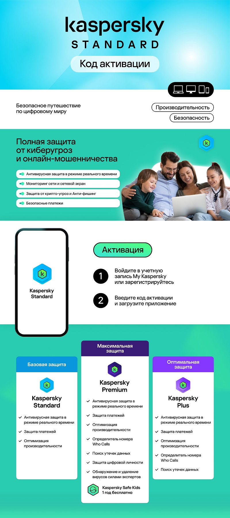 Kaspersky Standard подходит для продления продуктов Kaspersky Anti-Virus, Kaspersky Internet Security. Обязательно установите новое приложение Kaspersky, чтобы воспользоваться всеми функциями.