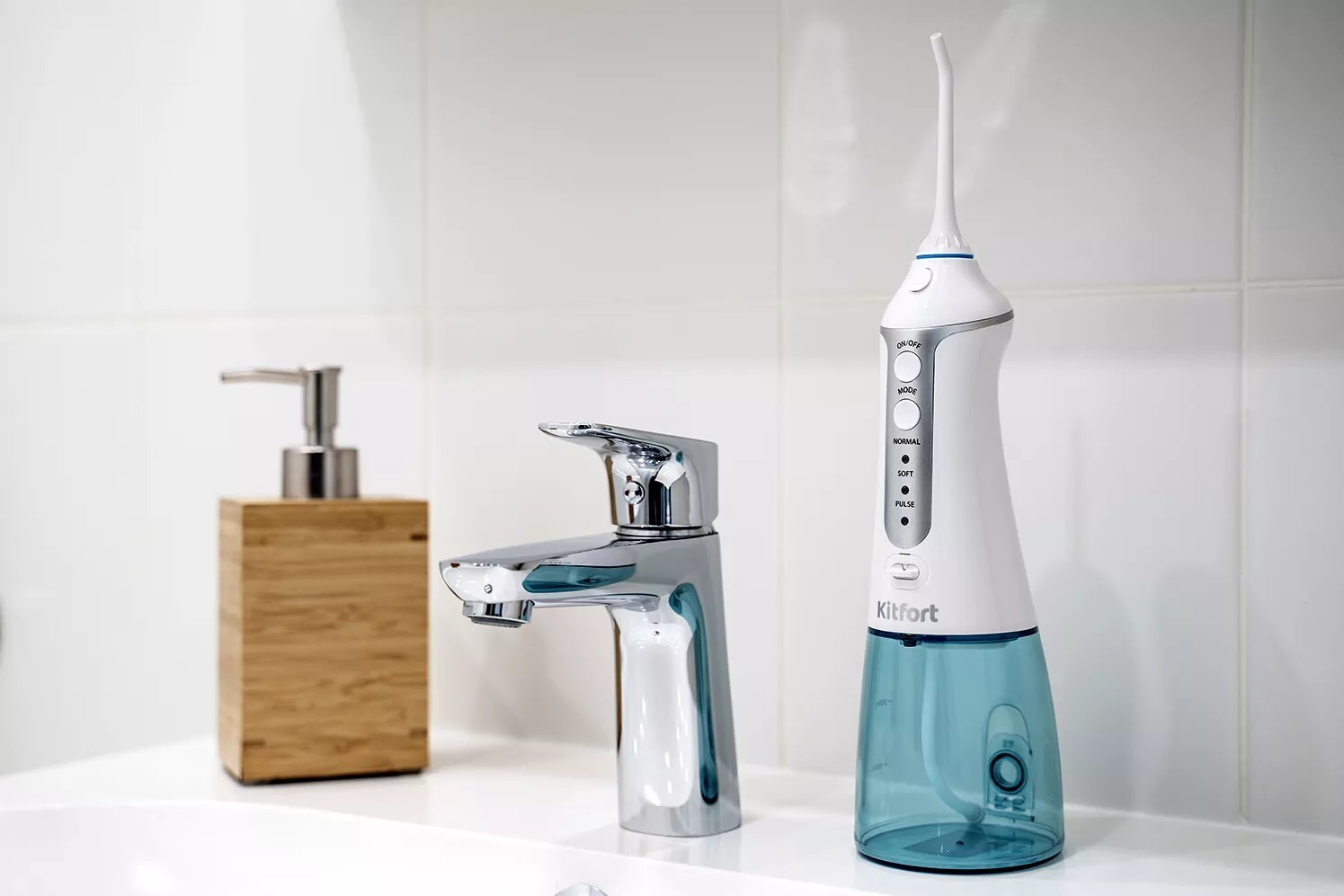 Для комфортной и бережной очистки полости рта можно выбрать один из 3 режимов работы: Normal, Soft и Pulse. Режимы Normal и Soft отличаются силой струи. Режим Pulse предназначен для массажа десен и общей чистки полости рта пульсирующей струей воды.