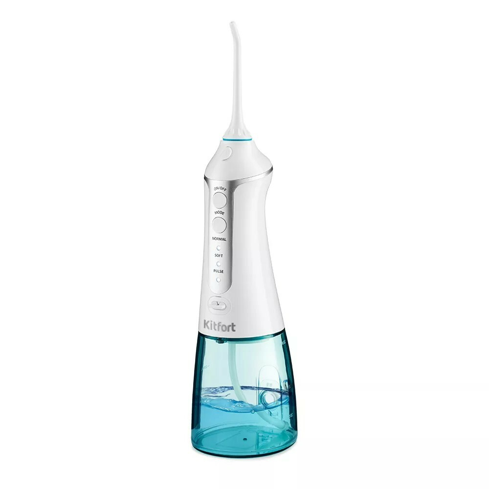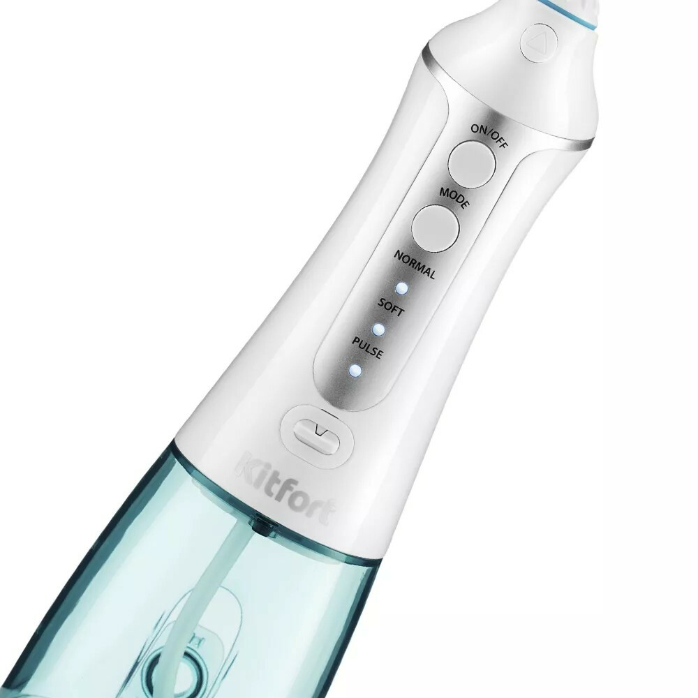 Kitfort КТ-2902 представляет собой портативный ирригатор для чистки полости рта. Тонкая и сильная струя воды не только вымывает остатки еды, налет из межзубного пространства и пародонтальных карманов, но и массажирует десны.