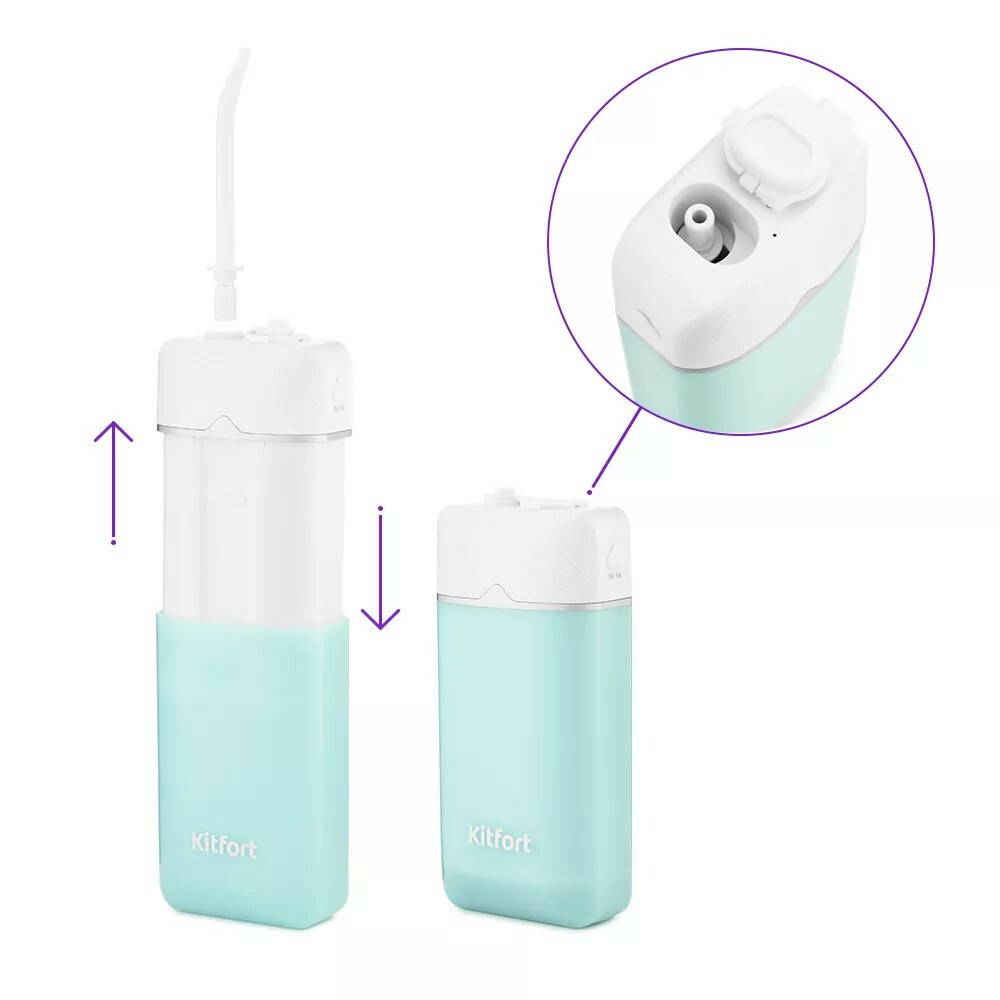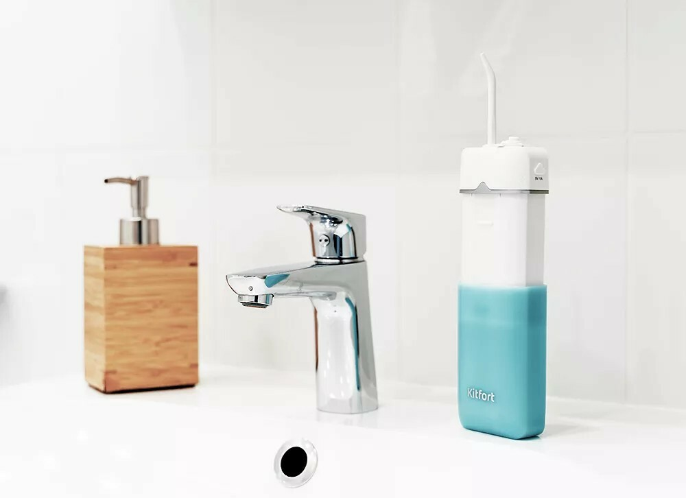 Kitfort КТ-2906 представляет собой портативный ирригатор для чистки полости рта. Тонкая и сильная струя воды не только вымывает остатки еды, налет из межзубного пространства и пародонтальных карманов, но и массажирует десны.