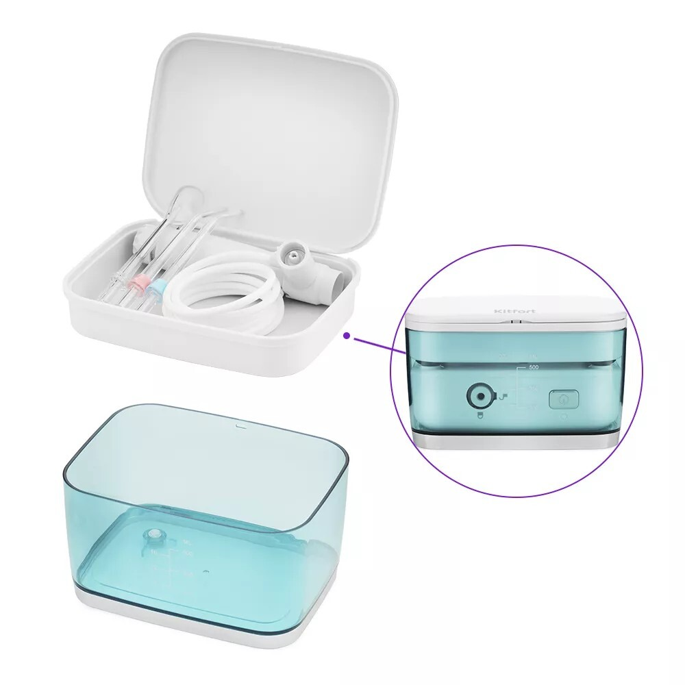 Kitfort КТ-2907 представляет собой стационарный ирригатор для чистки полости рта. Тонкая и сильная струя воды не только вымывает остатки еды, налет из межзубного пространства и пародонтальных карманов, но и массажирует десны.