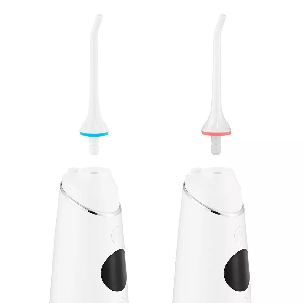 В комплекте с ирригатором идут 2 классические струйные насадки, например, для двух членов семьи. На насадках есть цветные уплотнительные кольца, чтобы их не путать.