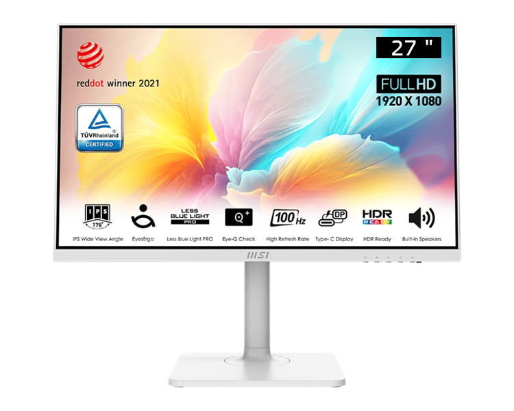 MSI PRO MP2712PW — 27" монитор формата 16:9 с разрешением изображения Full HD 1920x1080@100Гц. Серия MP2712P идеально подходит для работы и развлечений, обеспечивая максимальный комфорт при просмотре, даже если вы работаете с ним в течение длительного времени.