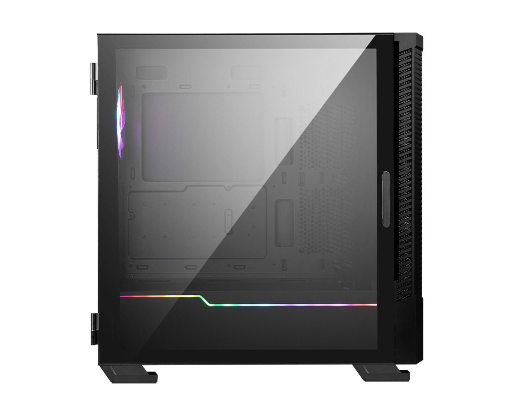 Передняя панель корпуса MPG Velox 100P Airflow представляет собой образец практичности и яркого дизайна. Она отлично вентилируется и оснащается двумя красочными полосками адресуемой светодиодной иллюминации.