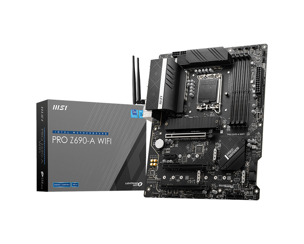 MSI PRO Z690-A WIFI — материнская плата форм-фактора ATX построена на базе чипсета Intel Z690 с поддержкой процессоров Intel Core, Pentium Gold и Celeron 12-го поколения на разъеме Intel LGA1700. Поддержка памяти DDR5 с частотой до 6400+ (ОС) в режиме разгона.
