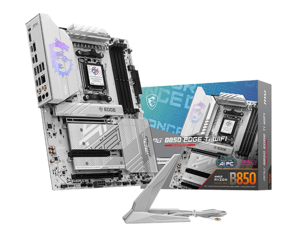 Материнская плата MSI MPG B850 EDGE TI WIFI B850, AM5, 4*DDR5, 3*PCIEx16, 4*M.2, 3*TypeC, 2*USB3.2Gen2, 1*USB3.2Gen1, 4*USB2.0, 4*SATA3.0, 5G, HDMI, ATX, RTL