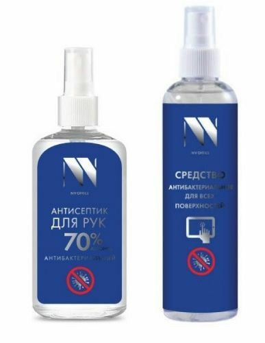 Антибактериальный набор NV-Office NVO-02-004 — спрей для поверхности (250 мл) + спрей для рук (125 мл).