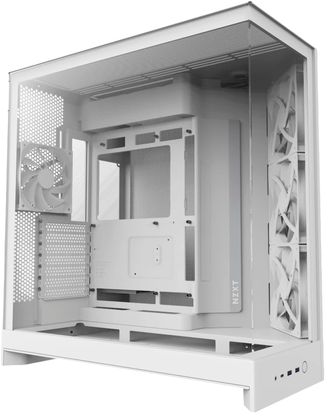 NZXT H9 Flow — это просторный корпус формата Midi-Tower, созданный для высокопроизводительных сборок, сочетающих эффективную вентиляцию и красивый внешний вид. Двухкамерная конструкция улучшает охлаждение и организацию кабелей, а перфорированные панели и поддержка большого количества вентиляторов обеспечивают оптимальные тепловые характеристики.