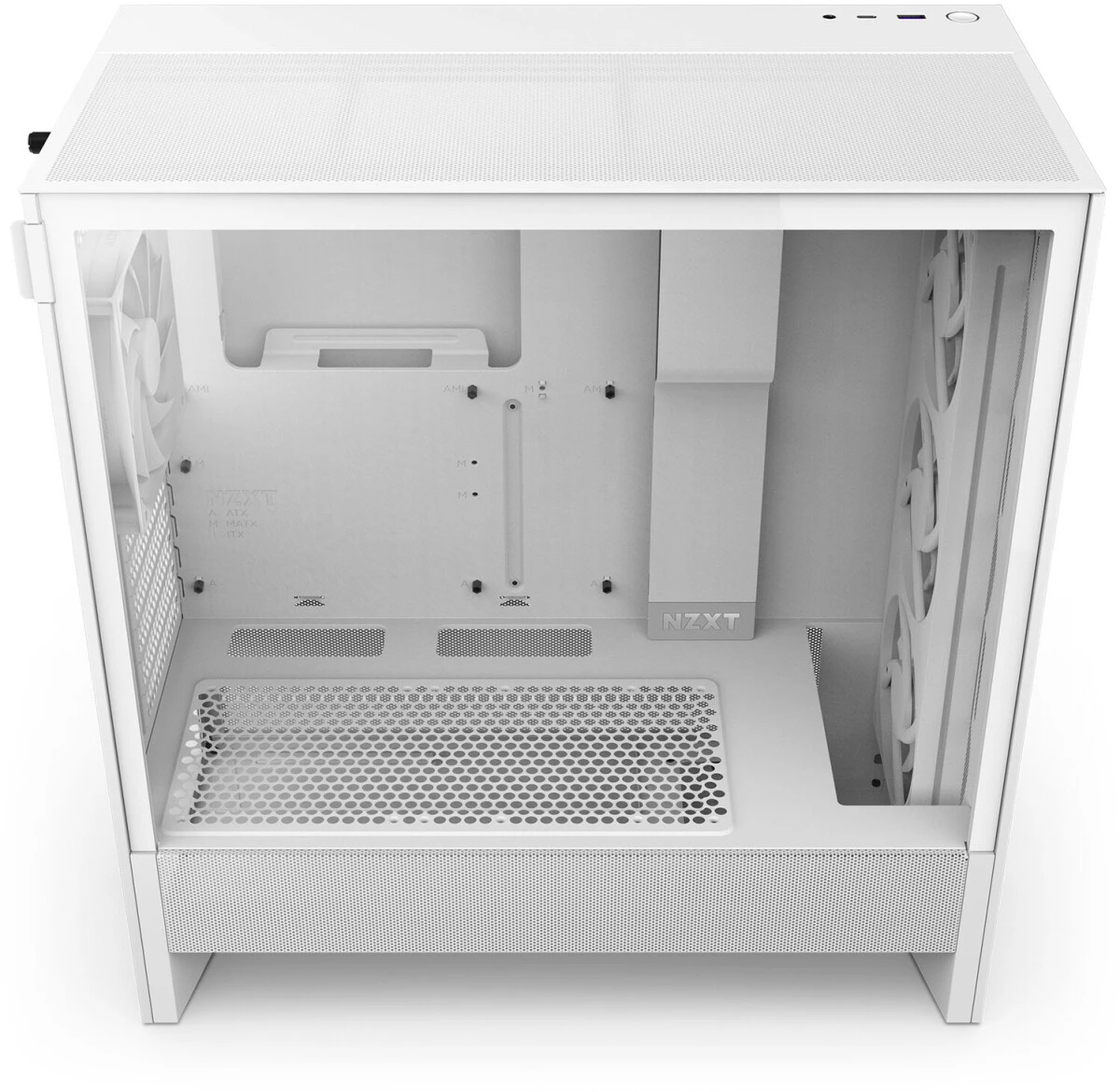 NZXT H5 Flow RGB — стильный Midi-Tower корпус с прозрачной боковой стенкой, через которую видны внутренние компоненты системы.